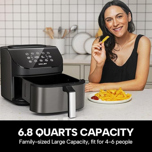 Air Fryer 6.8 Quarts, 10-in-1 Functions, Air Fry, Roast, Bake, Broil, Dehydrate, Large & Compact Air Fryers, Nonstick & Dishwasher-Safe Airfryer Basket, Stainless Steel Air Fryer, Metal Grey