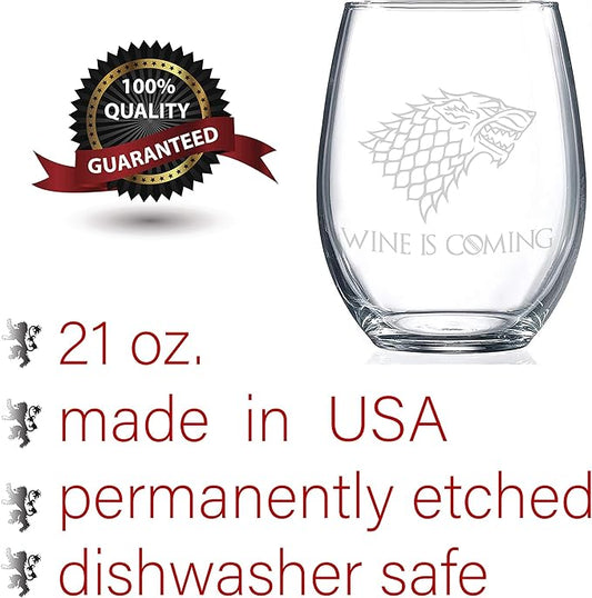 "Wine is Coming" Stemless Wine Glass - Perfect Christmas Gift for The Game of Thrones Fan