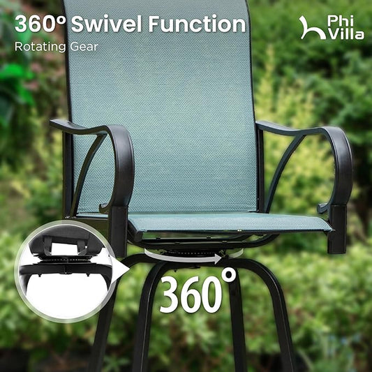 PHI VILLA 3 Piece Outdoor Bar Set, High Top Patio Bistro Table and Bar Chairs with Teal Textilene Fabric & Rustproof Metal Frame for Backyard, Balcony, Garden & Poolside