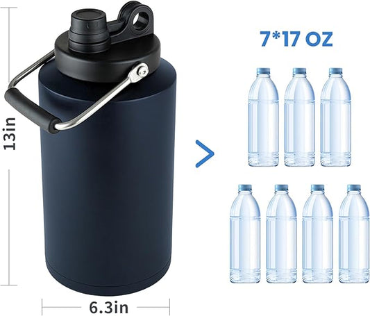 1 Gallon Water Jug Bottle Insulated, 128 oz Stainless Steel Water Bottle Wide Mouth Double Vacuum Dishwasher Safe BPA Free for Hot & Cold Drinks