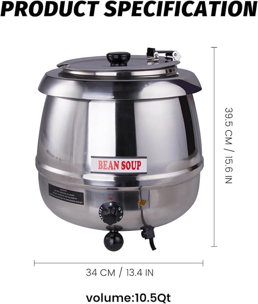 10.5Qt Soup Warmers Commercial Soup Kettle Warmer with Hinged Lid and Detachable Stainless Steel Pot, Food Warmer for Parties, Buffet - Silver