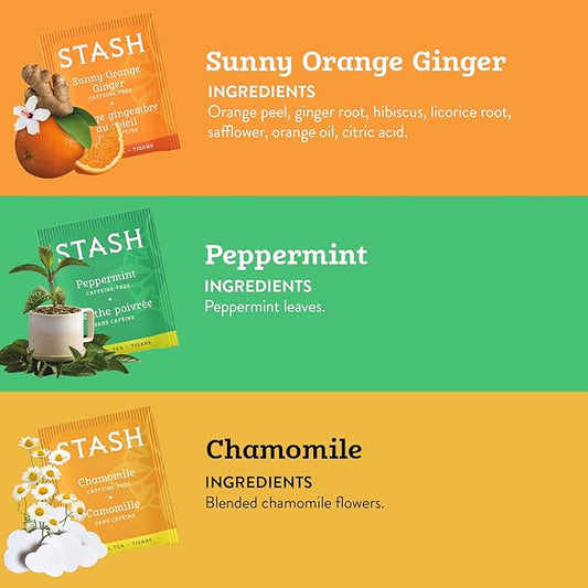 Stash Tea Soothing Herbal Tea 6 Flavor Variety Pack, 6 Boxes With 18-20 Tea Bags Each