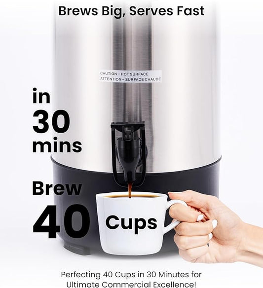 SYBO Commercial Grade Stainless Steel Percolate Coffee Maker, Hot Water Urn for Catering, Hot Beverage Dispenser, 40-Cup, 4.5L, Metallic