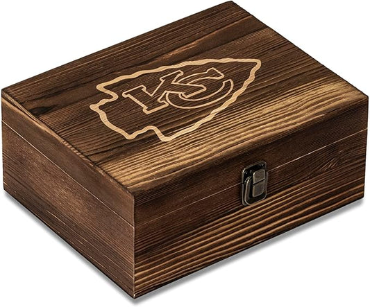 The Memory Company Officially Licensed NFL Wood Boxed Drinkware Set, with 2 Rocks Glasses and Cooling Cubes, Kansas City Chiefs