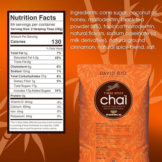 Tiger Spice Chai Tea Latte Mix, 64 Oz, Black Tea, Organic Spices, Dairy Free, Serve Hot or Cold, Just Add Water or Milk, 64 Servings, Perfect for Food Service