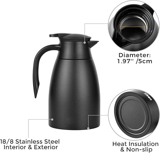 Tiken 68 Oz Thermal Coffee Carafe, Stainless Steel Insulated Vacuum Coffee Carafes For Keeping Hot, 2 Liter Beverage Dispenser (Starry Black)