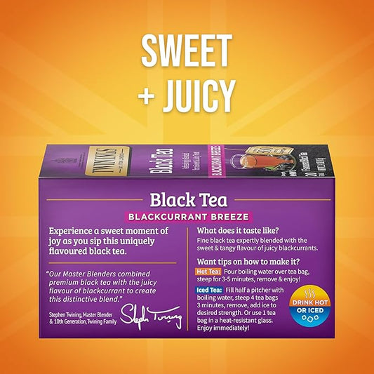 Twinings Blackcurrant Breeze Black Tea Individually Wrapped Bags, 20 Count (Pack of 1), Sweet, Tangy Taste, Caffeinated, Enjoy Hot or Iced, 20 Teabags