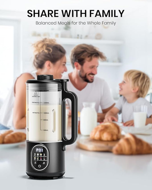 Upgraded 55oz (Extra Large) Nut Milk Maker Machine for Almond,Oat, Soy Milk Maker Machine with Auto Clean, Delay Start, BoilWater, Keep Warm (5-6 Cups),Black