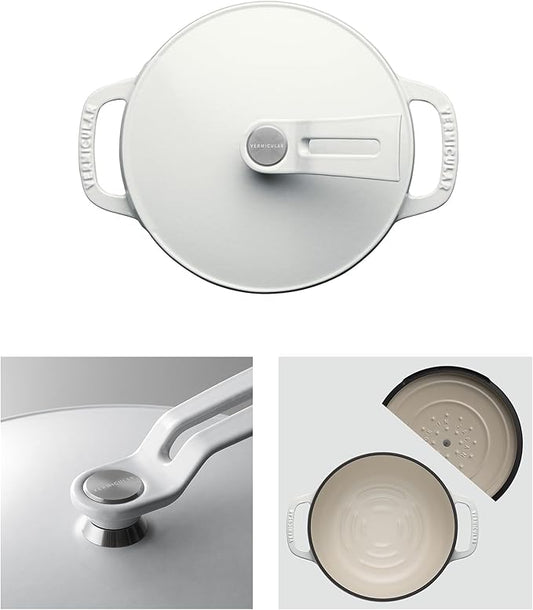 Vermicular Oven Pot 2.0 | Lightweight Enameled Cast Iron Pot | 14cm (1 Qt) | Non-Toxic | Induction-compatible | Dutch Oven | Made in Japan | Sea Salt White