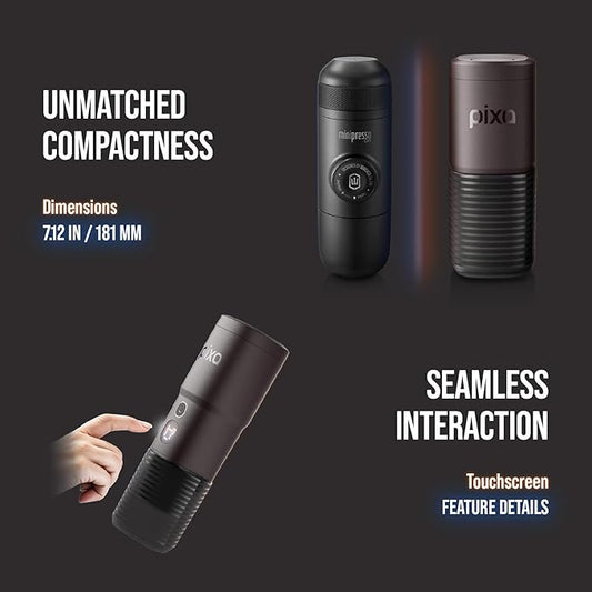 WACACO PIXAPRESSO, Coffee Machine Electric & Portable, With 4 Coffee Types & Fast Heat-Up, 3* 3000mAh Battery Up to 5 Cups, 20 Bar Portable Espresso Maker For Ground Coffee & NS Capsule, Dark Burgundy