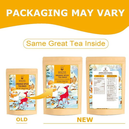 WT WEETEE Orange Spice Herbal Tea Bags, 2.5g x 50 Counts, Sweet Spices Tea Includes Cinnamon, Clove, Orange Peel, Rose Hips, Hibiscus & More, Natural Caffeine-free