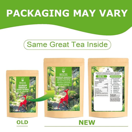 WT WEETEE Soursop Leaves Tea Bags 50 Count, Made with 100% Pure Soursop Graviola/Guanabana Leaves, Natural Caffeine-free Herbal Tea, Corn Fiber Tea Bags