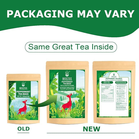 WT WEETEE Peppermint Tea Bags, Made with 100% Pure Peppermint, Fresh Minty Flavour Herbal Tea, Naturally Caffeine Free, 100 Count