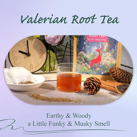 WT WEETEE Valerian Root Tea Bags, Made with Pure Valerian Root (Valeriana), 50 Count Earthy/Woody Herbal Tea Bags, Naturally Caffeine-free
