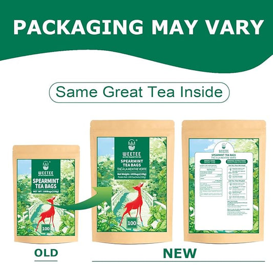 WT WEETEE Spearmint Tea Bags, Made with 100% Pure Spearmint Leaf, Natural Caffeine-free Herbal Tea, Refreshing & Smooth Mint Tea