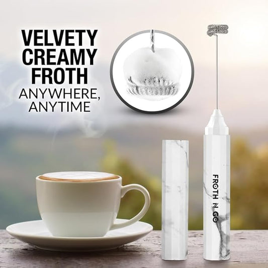 Zulay Kitchen FrothMate Powerful Milk Frother Portable & Compact Handheld Foam Maker Lattes, Cappuccinos (Marble, Froth N Go)
