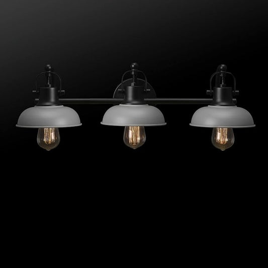 Globe Electric 52065 Gladstone 5-Piece All-In-One Bathroom Set, Matte Black, 3-Light Vanity Light with Matte Gray Metal Shades, Towel Bar, Towel Ring, Robe Hook, Toilet Paper Holder