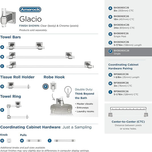 Amerock | Clear/Chrome | Glacio |Towel Bar | 24 inch (610 mm) | 4 Piece | Bathroom Accessories Set