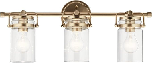 Kichler, Brinley 24" 3 Light Vanity Light with Clear Glass in Champagne Bronze for Bathroom and Powder Room, (24" W x 10.25" H), 45689CPZ