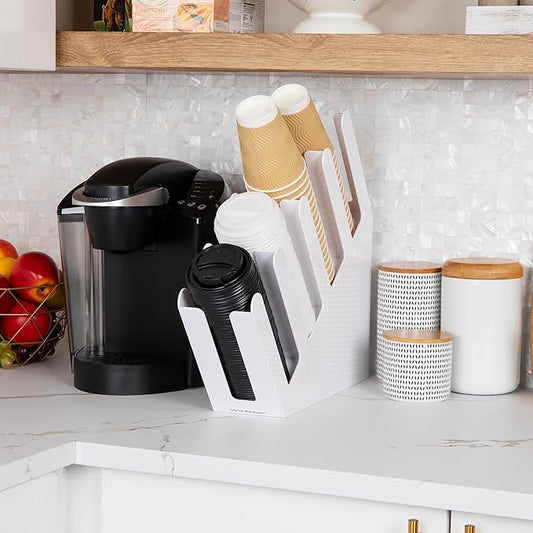 Mind Reader Cup and Lid Dispenser, Countertop Org, Coffee Bar, Beverage Cup, Kitchen, Breakroom, 4"L x 18"W x 16"H, White