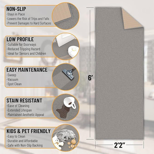 Ottomanson Hallway Runner Rug 2'2" x 6' Non Slip Solid Area Rugs Easy to Clean Laundry Rug Runner Durable & Pet Friendly Floor Carpet Runners for Hallways Entryway Living Room Kitchen, Gray