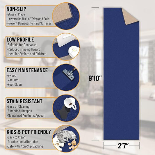 Ottomanson Hallway Runner Rug 2'7" x 9'10" Non Slip Solid Area Rugs Easy to Clean Laundry Rug Runner Durable & Pet Friendly Floor Carpet Runners for Hallways Entryway Living Room Kitchen, Navy