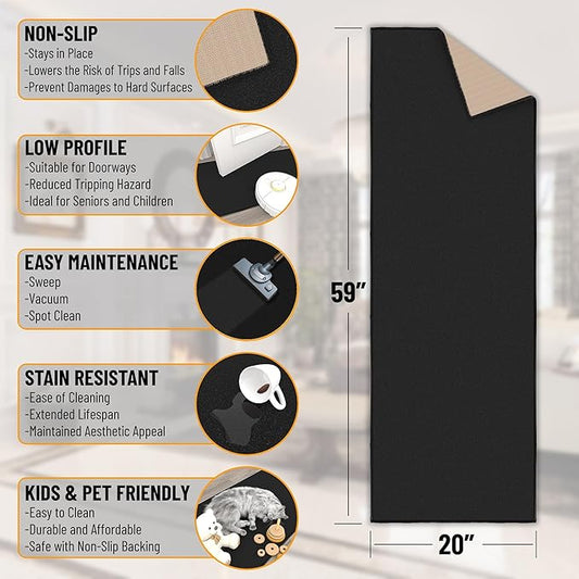 Ottomanson Hallway Runner Rug 20" x 59" Non Slip Solid Area Rugs Easy to Clean Laundry Rug Runner Durable & Pet Friendly Floor Carpet Runners for Hallways Entryway Living Room Kitchen, Black