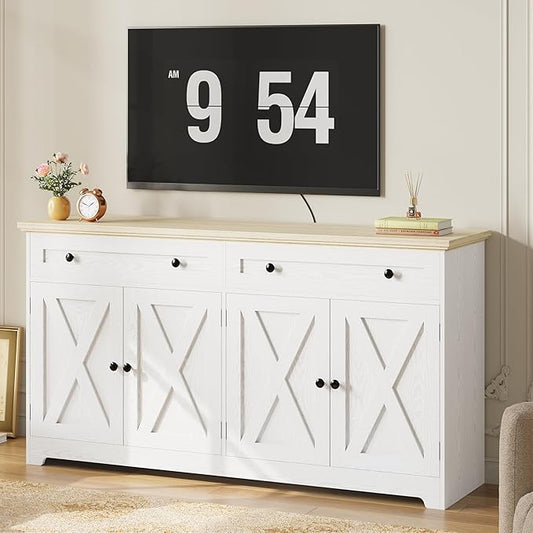 IRONCK Buffet Cabinet with Storage, Sideboard Storage Cabinet, Kitchen Cabinet with Drawers and Doors, Natural Wood