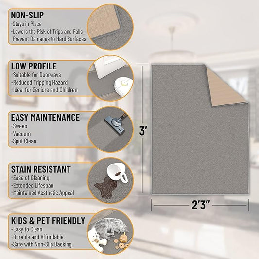 Ottomanson Rugs for Entryway 2'3" x 3' Non Slip Solid Small Area Rugs Durable Front Door Mat Rug Stain Resistant Entrance Rugs for Bathroom Kitchen Bedroom & Living Room, Gray
