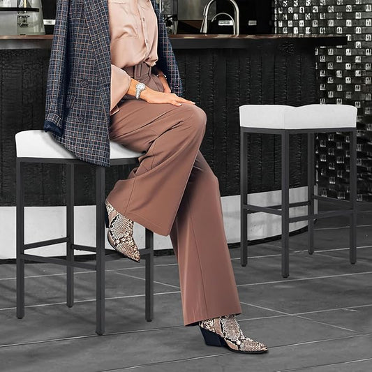 Athena Collection Counter Height Bar Stools Set of 2, 31.5 Inches Saddle Bar Stools with Leather Upholstered and Metal Legs, Backless Barstools for Counter, Kitchen Island, Dining Room, White