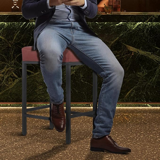 Athena Collection Counter Height Bar Stools Set of 2, 26 Inches Saddle Bar Stools with Leather Upholstered and Metal Legs, Backless Barstools for Counter, Kitchen Island, Dining Room, Mocha
