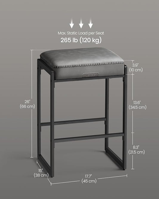 VASAGLE EKHO Collection - Bar Stools Set of 2, Counter Height Bar Stools, Synthetic Leather with Stitching, Mid-Century Modern Counter Stools, 26-Inch Tall, Kichen Home Bar Dining Room, Dove Gray
