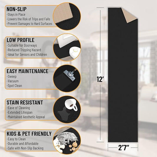 Ottomanson Hallway Runner Rug 2'7" x 12' Non Slip Solid Area Rugs Easy to Clean Laundry Rug Runner Durable & Pet Friendly Floor Carpet Runners for Hallways Entryway Living Room Kitchen, Black