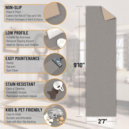 Ottomanson Hallway Runner Rug 2'7" x 9'10" Non Slip Solid Area Rugs Easy to Clean Laundry Rug Runner Durable & Pet Friendly Floor Carpet Runners for Hallways Entryway Living Room Kitchen, Gray