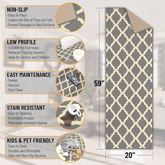 Ottomanson Hallway Runner Rug 20" x 59" Non Slip Trellis Area Rugs Easy to Clean Laundry Rug Runner Durable & Pet Friendly Floor Carpet Runners for Hallways Entryway Living Room Kitchen, Gray