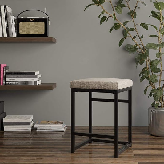 Homepop Home Decor | Modern 24-Inch Counter Stool | Backless Metal Frame Bar Stools Counter Height | Decorative Home Furniture, Brown, K7651.24-F1552