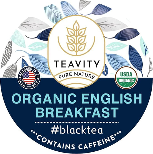 Organic English Breakfast Tea Pods for Keurig - Naturally Caffeinated Unsweetened Black Tea Pods by Teavity (24 Tea Pods)
