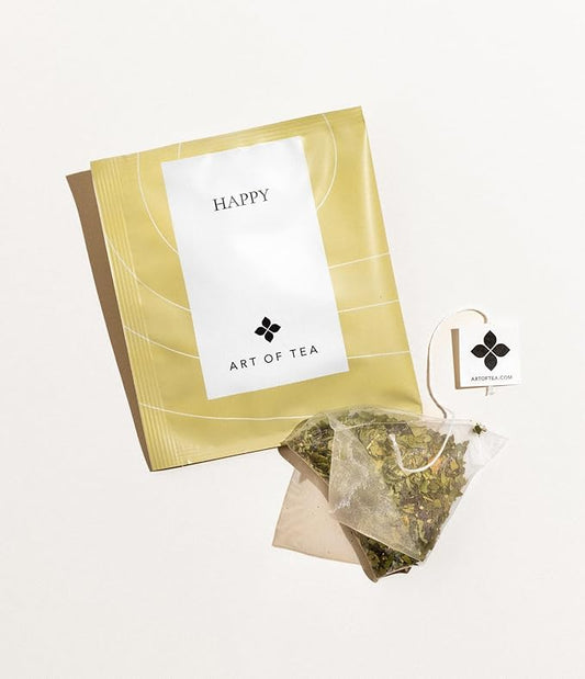 Art of Tea | Organic Happy Tea | Organic Green Tea | 12 Eco Friendly Pyramid Tea Bags Sachet |