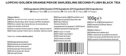 VAHDAM, Second Lopchu Golden Orange Pekoe Black Tea| 40+ cups, 3.53 oz | Pure 100% Unblended Darjeeling Black Tea Loose Leaf | Single Estate Tea