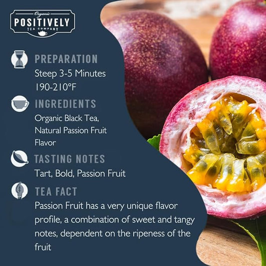 Organic Positively Tea Company, Passion Fruit Black Tea Bags, 100 Count, Eco-Friendly Tea Bags, Non-GMO
