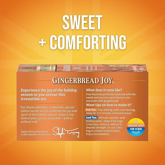 Twinings Gingerbread Joy Black Tea Individually Wrapped Bags, 20 Count (Pack of 1), Ginger & Cinnamon, Caffeinated, Enjoy Hot or Iced, 20 Teabags