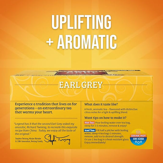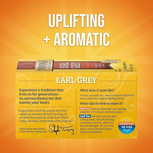 Twinings Earl Grey Black Tea Individually Wrapped Bags, 20 Count (Pack of 1), Flavoured with Citrus and Bergamot, Caffeinated, Enjoy Hot or Iced, 20 Teabags