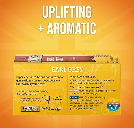 Twinings Earl Grey Black Tea Individually Wrapped Bags, 25 Count (Pack of 6), Flavoured with Citrus and Bergamot, Caffeinated, Enjoy Hot or Iced, 150 Teabags