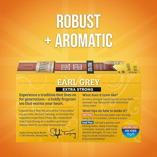 Twinings Earl Grey Extra Strong Black Tea Individually Wrapped Bags, 20 Count (Pack of 6), Flavoured with Citrus and Bergamot, Caffeinated, Enjoy Hot or Iced, 120 Teabags