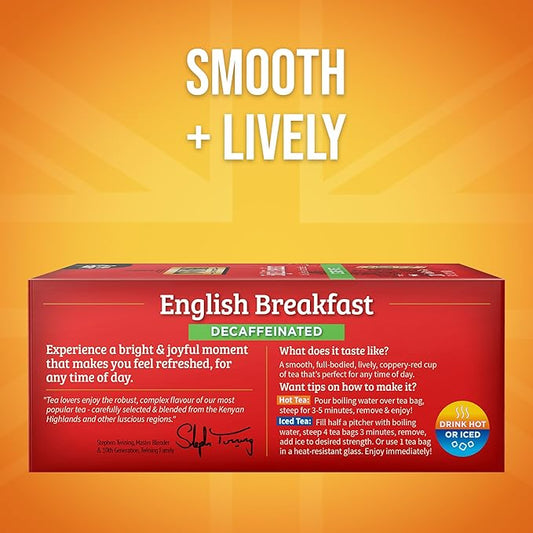 Twinings Decaffeinated English Breakfast Black Tea Individually Wrapped Bags, 100 Count (Pack of 1), Smooth, Flavourful Black Tea, Enjoy Hot or Iced, 100 Teabags