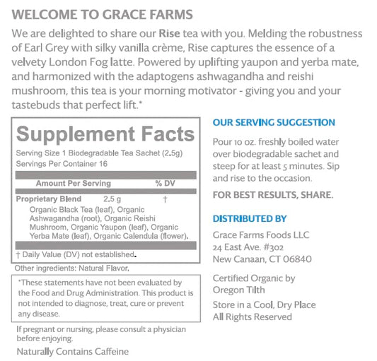 Grace Farms Organic Rise Wellness Blend Tea, 16 Ct