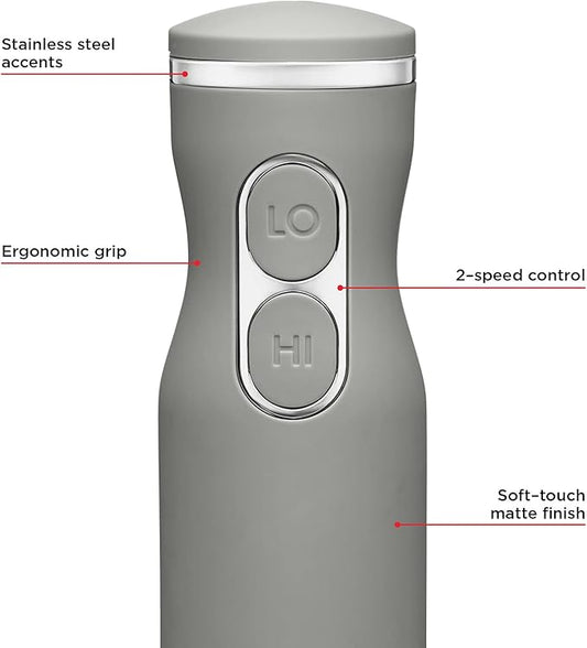 Chefman Immersion Stick Hand Blender with Stainless Steel Blades, Powerful Electric Ice Crushing 2-Speed Control Handheld Food Mixer, Purees, Smoothies, Shakes, Sauces & Soups, Grey