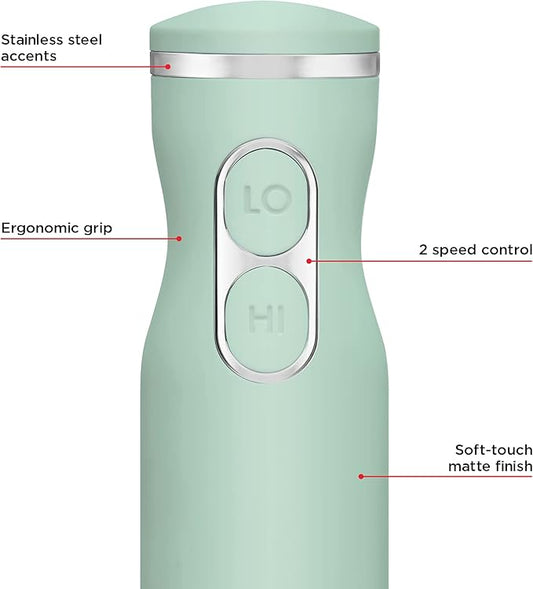 Chefman Immersion Stick Hand Blender with Stainless Steel Blades, Powerful Electric Ice Crushing 2-Speed Control Handheld Food Mixer, Purees, Smoothies, Shakes, Sauces & Soups, Sage