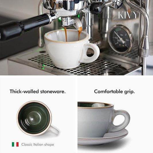 KIVY Cappuccino cups set of 4 [8oz] - Thick-walled stoneware cappuccino cup set for latte art - Cappuccino coffee cups - Tazas de cafe - Latte cups - Latte art cup and saucer set of 4 - Green, Blue
