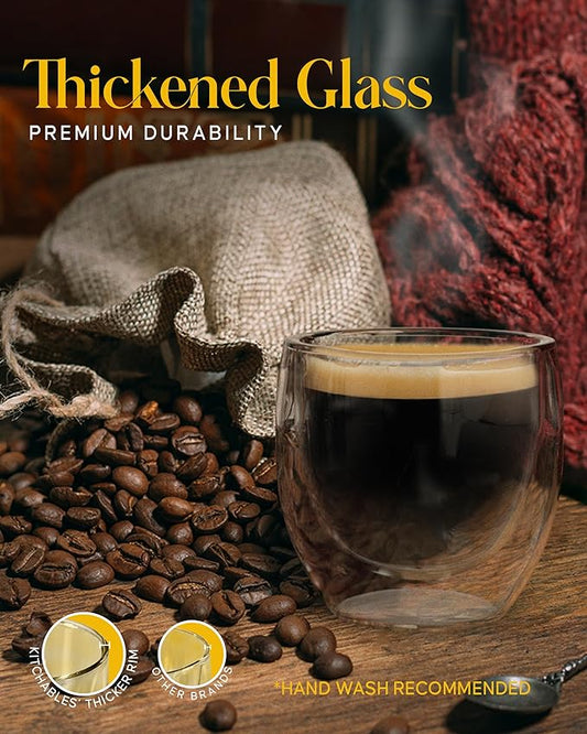 Kitchables Double Walled Glass Coffee Mugs Set of 4, 8oz - Insulated Glass Coffee Mugs for Cappuccino, Latte, Tea, Espresso - Latte Cup - Tazas Para Cafe